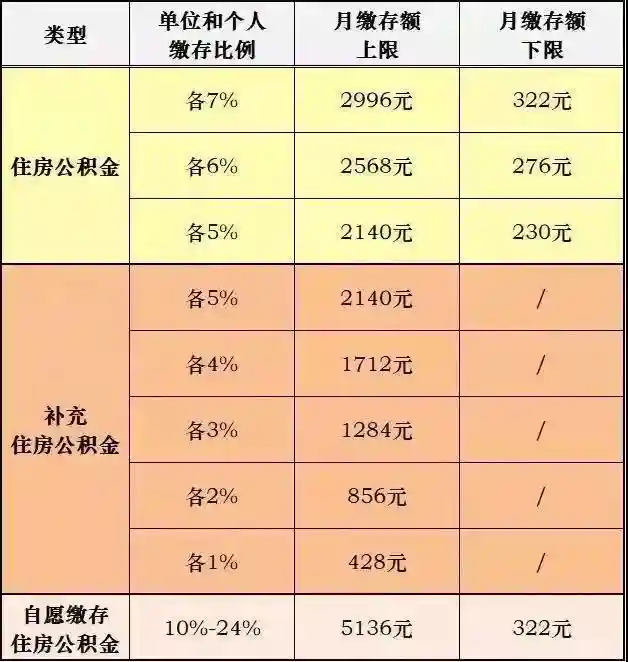 住房公积金按照7%缴纳,补充公积金按照5%缴纳,也就是单边缴纳12%,双边加一起是24%。