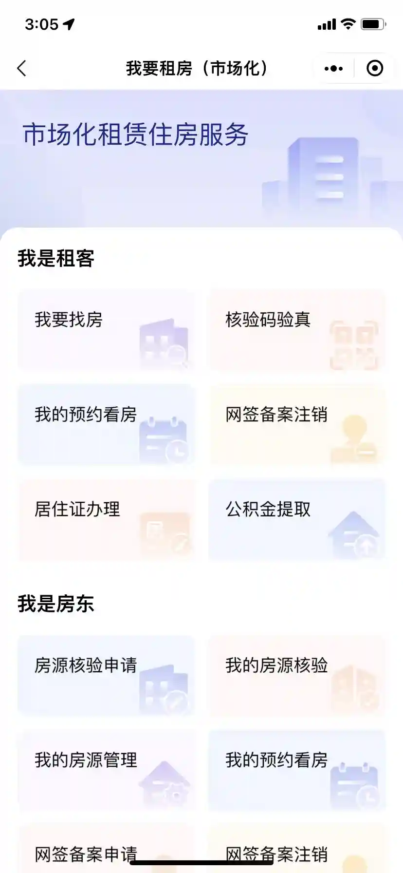 包括房源核验申请、我的房源核验、我的房源管理、我的预约看房、网签备案申请、网签备案注销等服务事项。