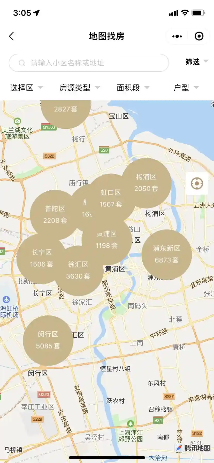 3、个人可根据实际需求按行政区、房源类型、面积段和户型筛选。