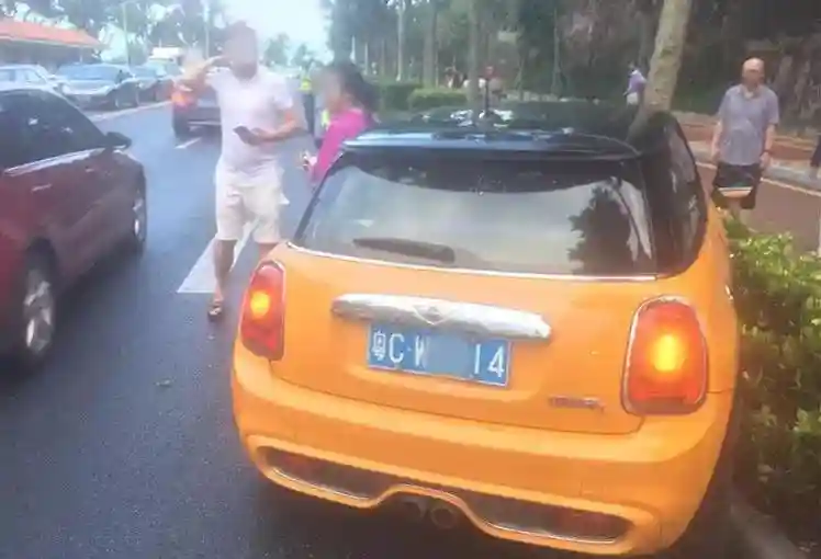 接报警后,香洲交警迅速赶到现场,只见一辆粤CW××14号橙色mini小车停在公积金中心巴士站前方30米处,车头铲上绿化带,前挡风玻璃裂成了蜘蛛网状,车旁站着一男一女,一脸慌张。▼