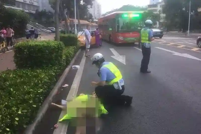 当时刚下完雨,地面湿漉漉的,李警官迅速把身上的反光雨衣脱下,给女子盖上,蹲下询问受伤女子的情况。女子虽然疼痛,但意识还很清楚,可以和李警官对话。▼