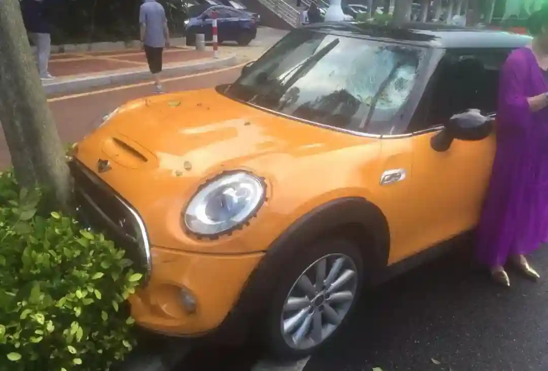 mini小车冲到道路右侧绿化带,撞到一棵树后才停了下来。开车的女司机非常惊慌,呆坐在车内半天都没有动静。坐在副驾的男子迅速推开车门,下车查看伤者情况并报警。▼