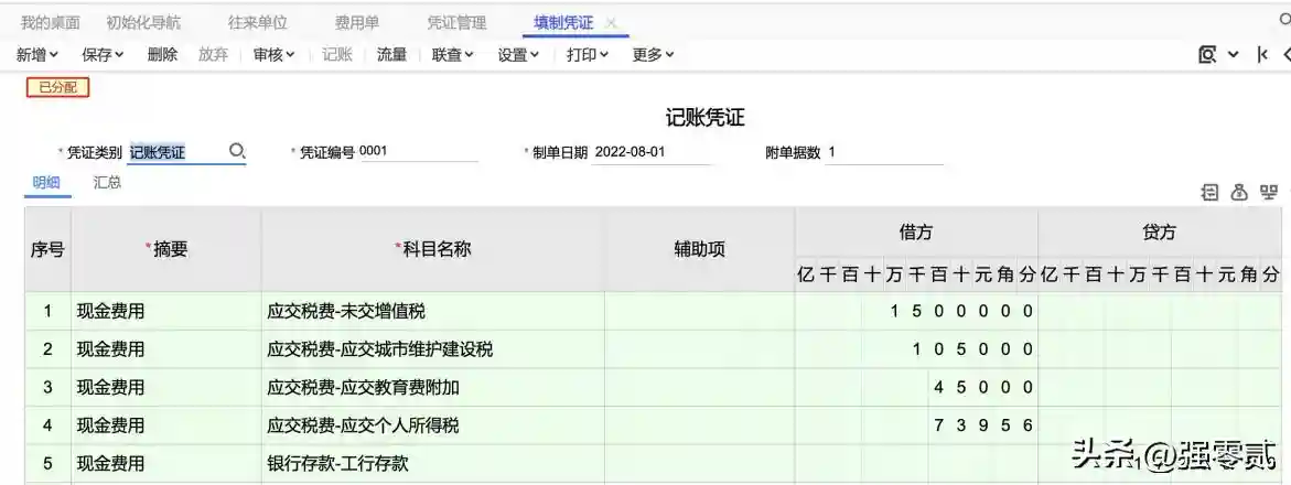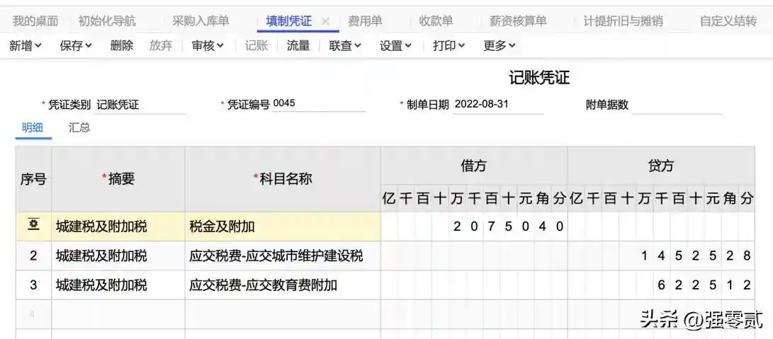 b.勾选0001城建税及附加税包含未记账【生成凭证】