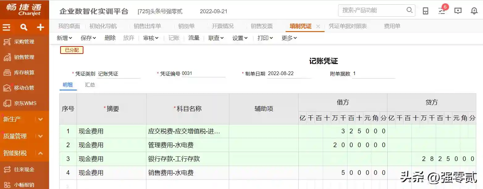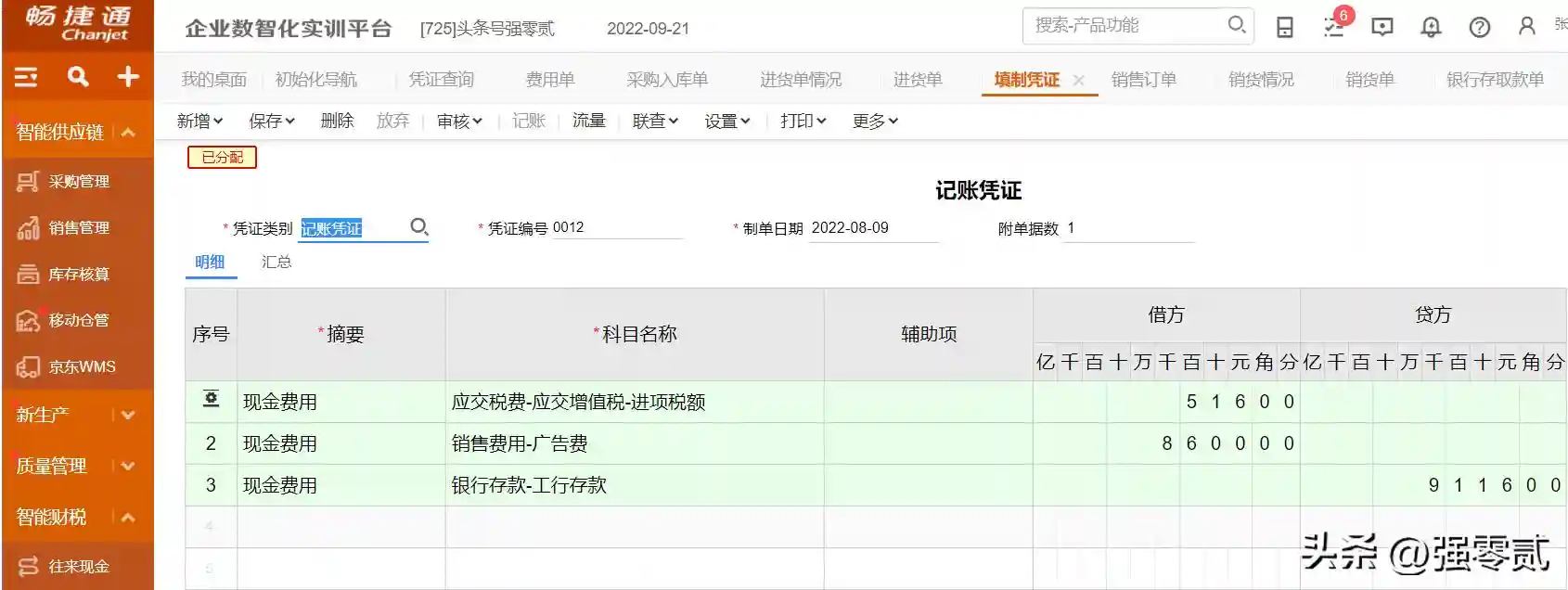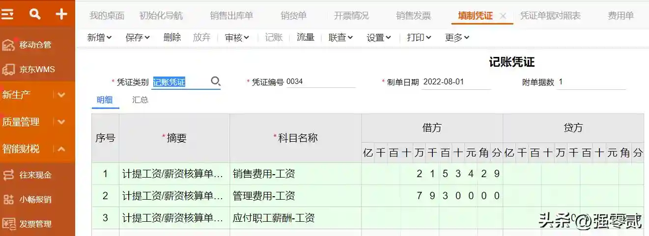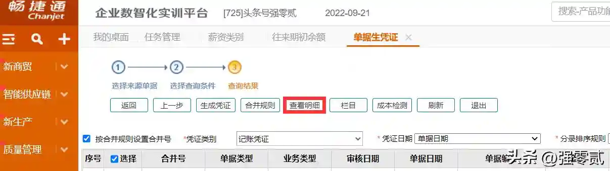 b.【智能财税】-【总账】-【单据生凭证】勾选所有单据,【下一步】过滤条件窗口继续点【下一步】对单据进行【凭证生成】在草稿页面对不同部门费用进行手工分摊调整分录