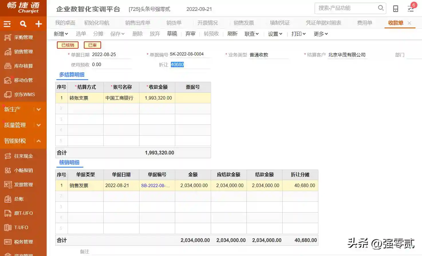 多结算明细:转账支票中国工商银行表头折让:根据合同付款条件计算出折扣额