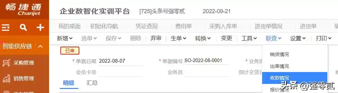 b.【联查】-【收款情况】双击记录进入收款单界面