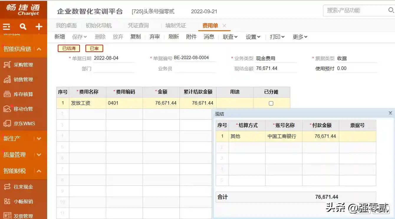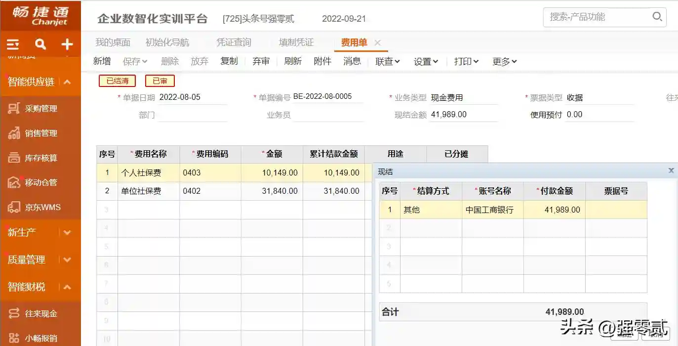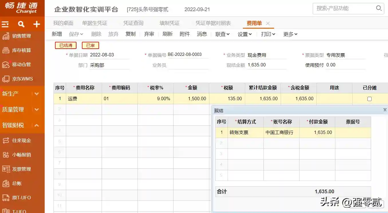 a.【智能财税】-【往来现金】-【费用单】表头的部门、业务员默认记忆录入内容,需要删除后,重新选择。业务类型:现金费用票据类型:专用发票