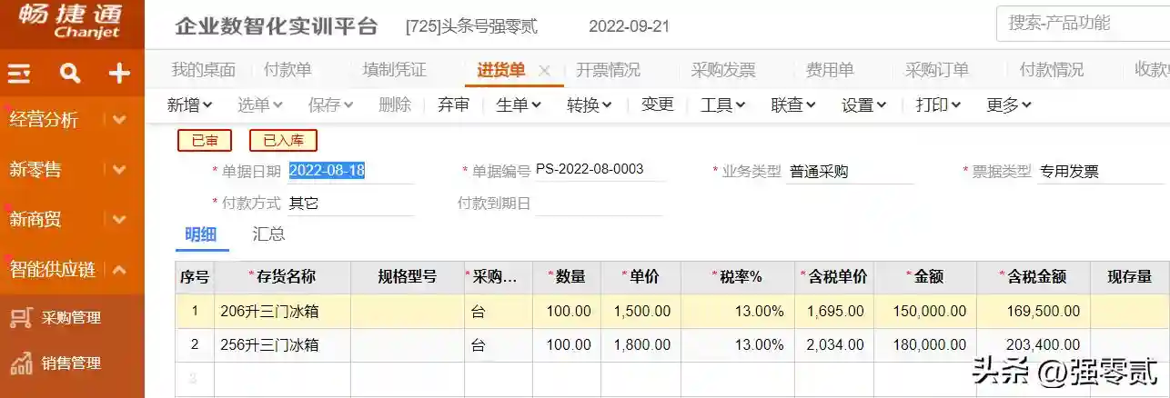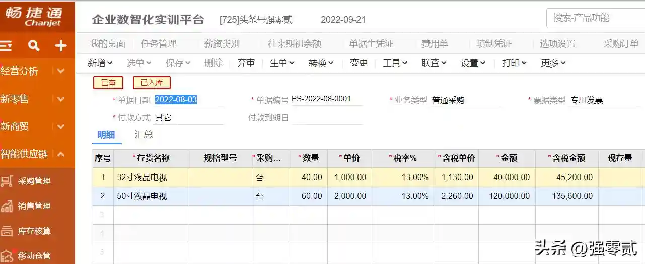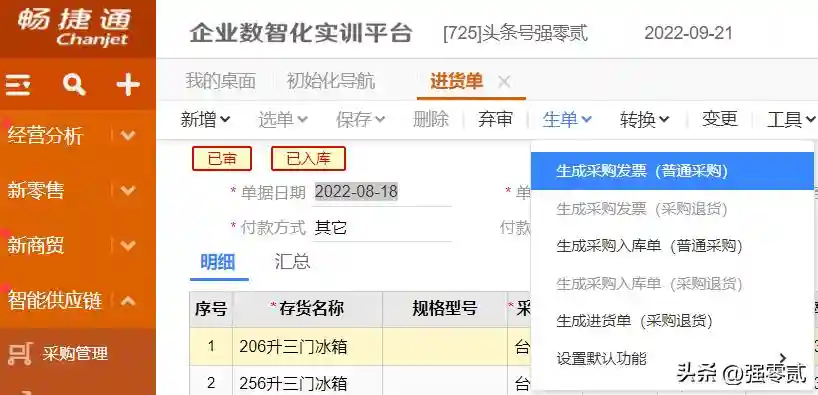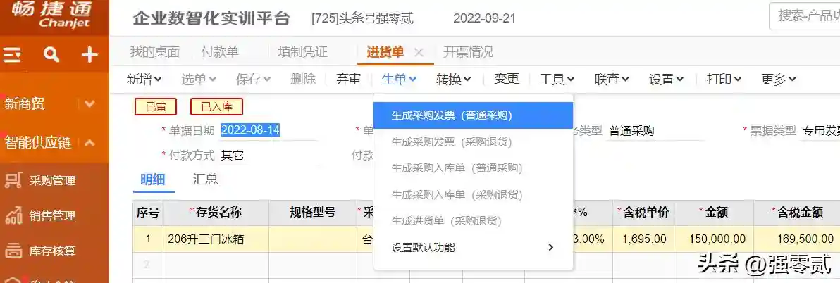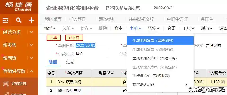 a.【智能供应链】-【库存核算】-【采购入库单】