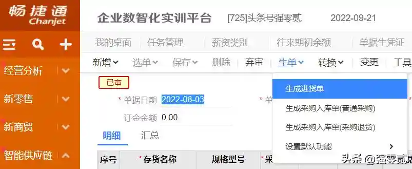 a.【智能供应链】-【采购管理】-【采购订单】录入采购订单后,进行【保存】-【审核】