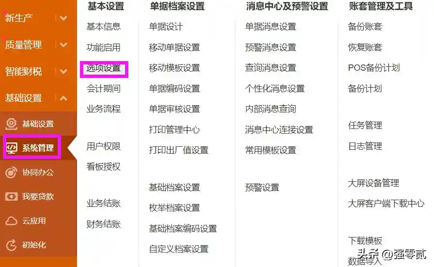 c.【基础设置】-【系统管理】-【选项设置】在页面中找到凭证接口