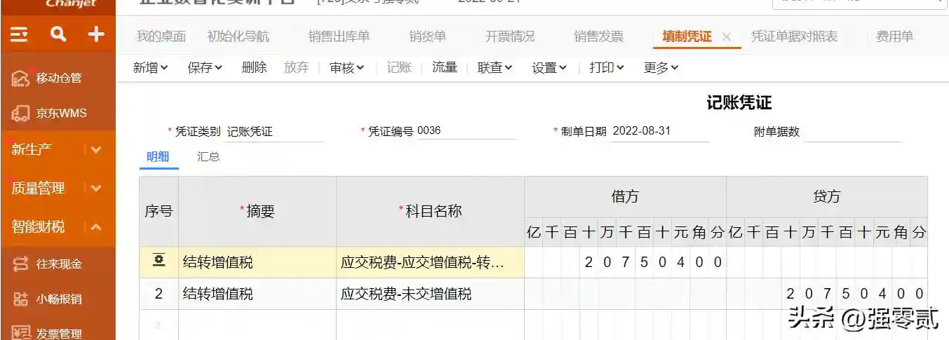d.【智能财税】-【总账】-【查询凭证】找到之前保存的凭证.将借方红字金额修改为贷方正数并【保存】