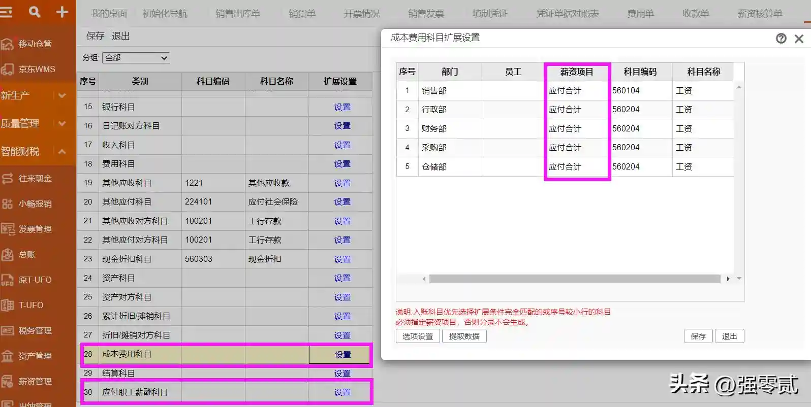 d.【智能财税】-【总账】-【科目设置】分别对成本费用科目应付职工薪酬科目进行薪资项目更改