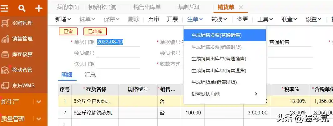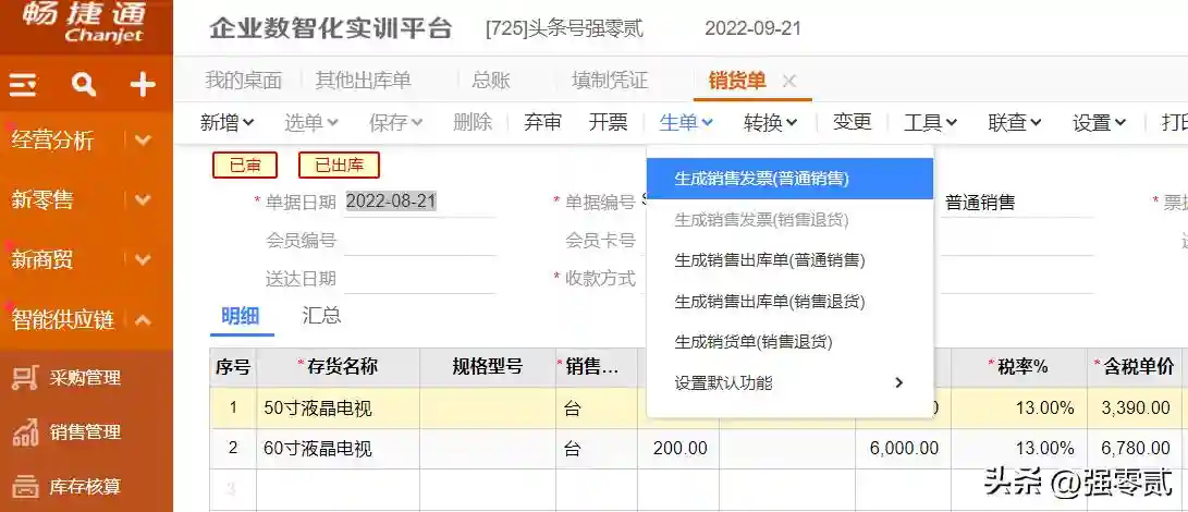 a.【智能供应链】-【库存核算】-【销售出库单】-【选单】