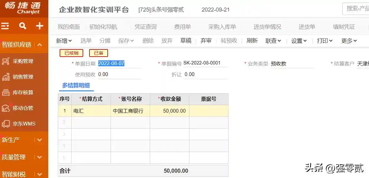 a.【智能供应链】-【销售管理】-【销售订单】录入表体信息后。表头订金金额录入预付金额【保存】【审核】