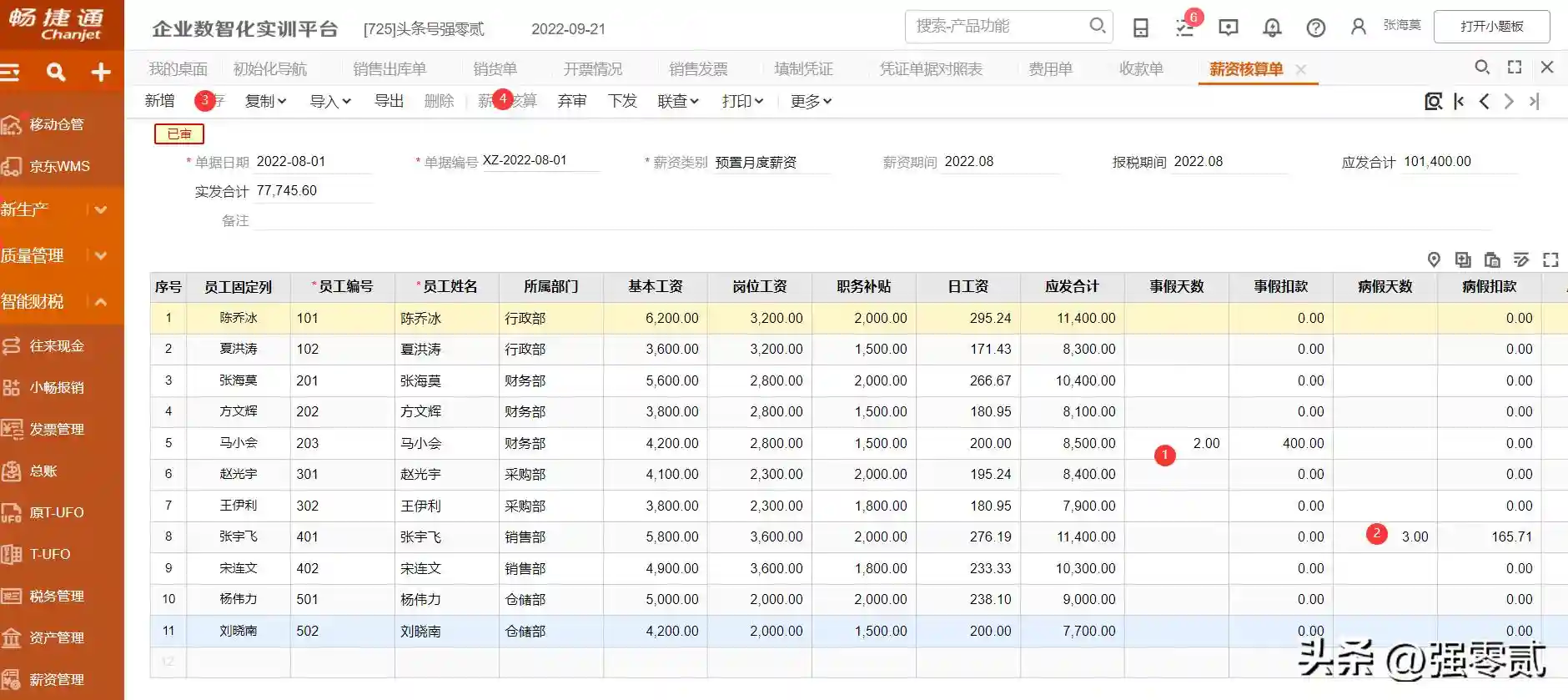 a.【智能财税】-【薪资管理】-【薪资核算单】
