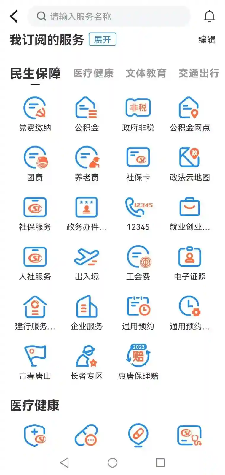 △“幸福唐山”APP服务页面