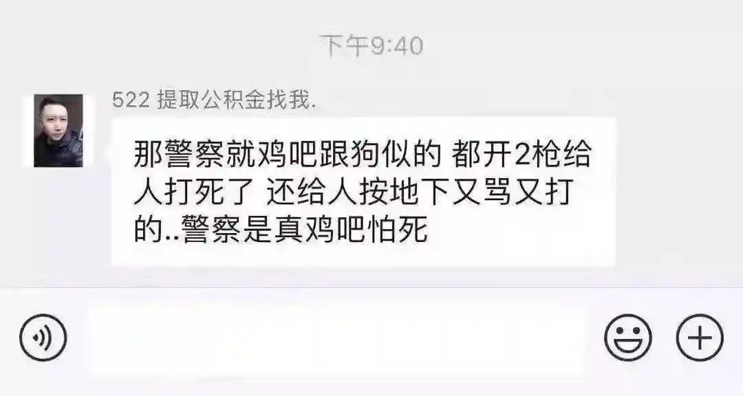 其中,有个微信名称为“522提取公积金找我”的网民在一微信群内大肆辱骂警察: