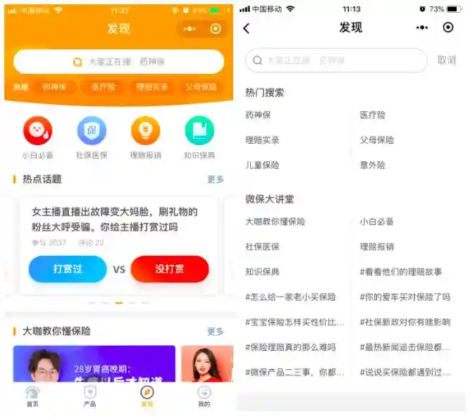 回到微保这款产品,如果单靠内容总会让人有点“干涩”,其实笔者认为还可以增加活动板块,做到真正意义上的有趣有用又好玩。