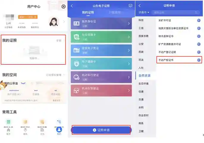 不动产登记完成后,“爱山东”APP、微信小程序还可以一键申领“不动产权证书”,手机亮证更方便!